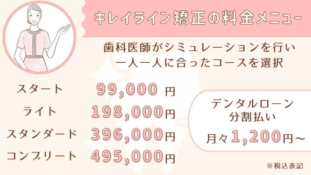キレイライン矯正の料金メニュー
