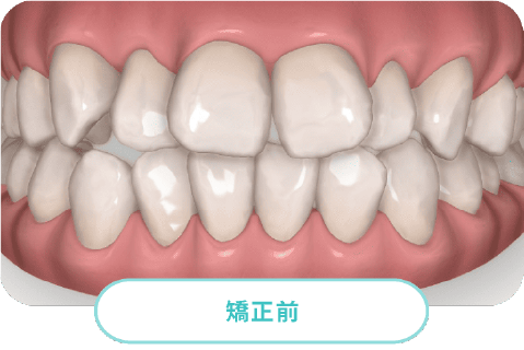 前歯部分の矯正治療前歯のガタガタやすきっ歯など軽度の歯列不正に対し、20枚のマウスピースをとりかえながら、約6ヶ月程度治療を行います。