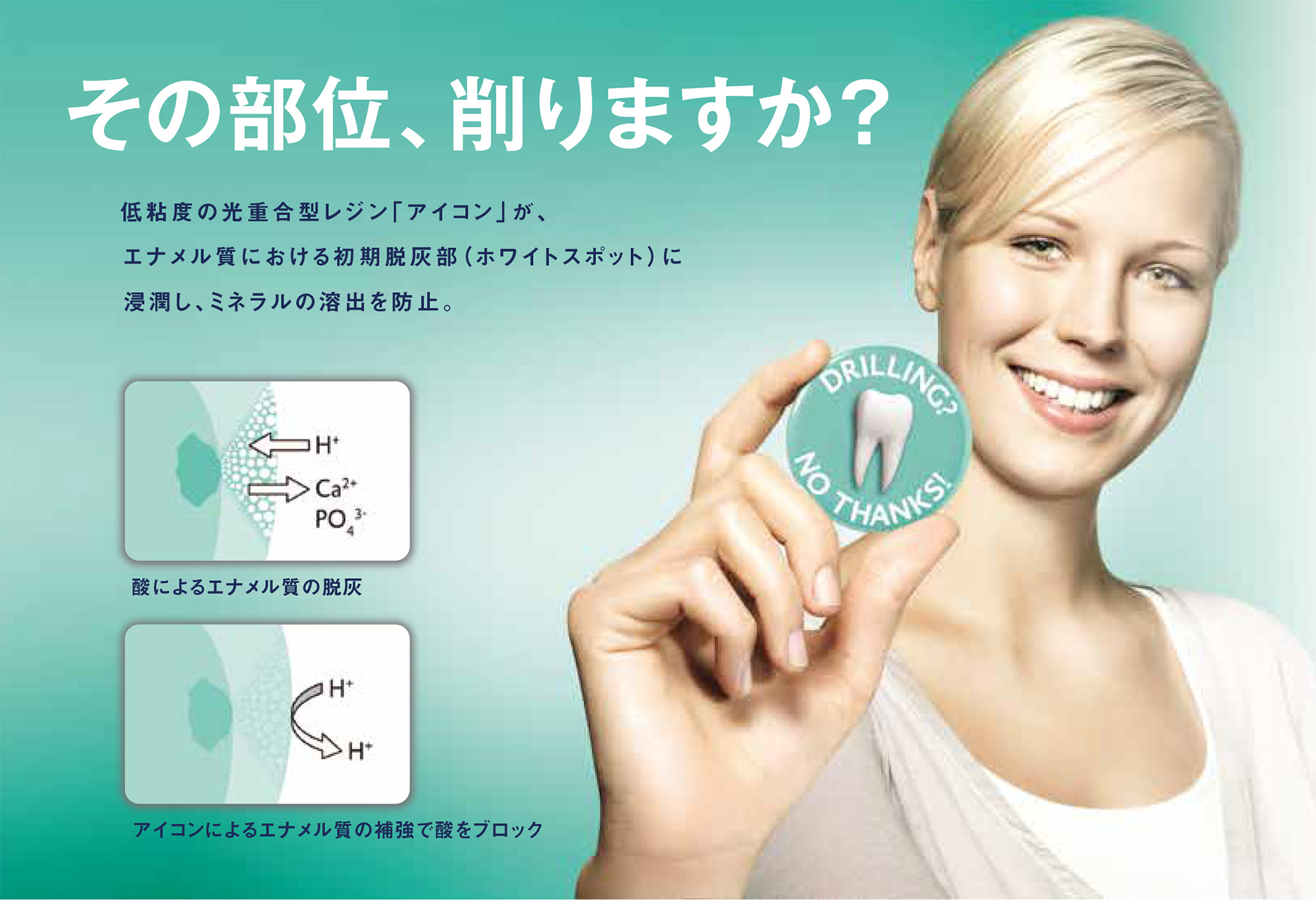 当院で導入している「アイコン(Icon)」は、ドイツのDMG社が開発した、ドリルを使わずにホワイトスポットを治療するための革新的な歯科材料です。